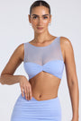 Sheer Panelled Ruched Crop Top in Periwinkle Blue