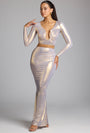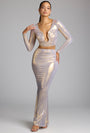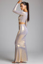 • Mid Rise Metallic Jersey Gown Skirt in Light Gold